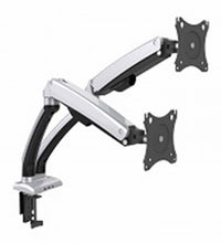 This 12″-30″ Monitor Desk Mount Double Arm bracket has a gas spring hovering system that gracefully adjusts the monitor height and swivels action for greater positioning flexibility. This can easily adjust to support an ergonomically correct workstation. Sit more comfortably at your desk while reducing neck, eye, and back strain. The display mount helps keep your desk and workstation clear.