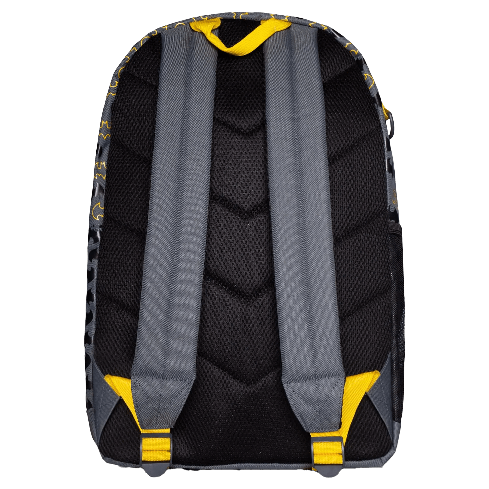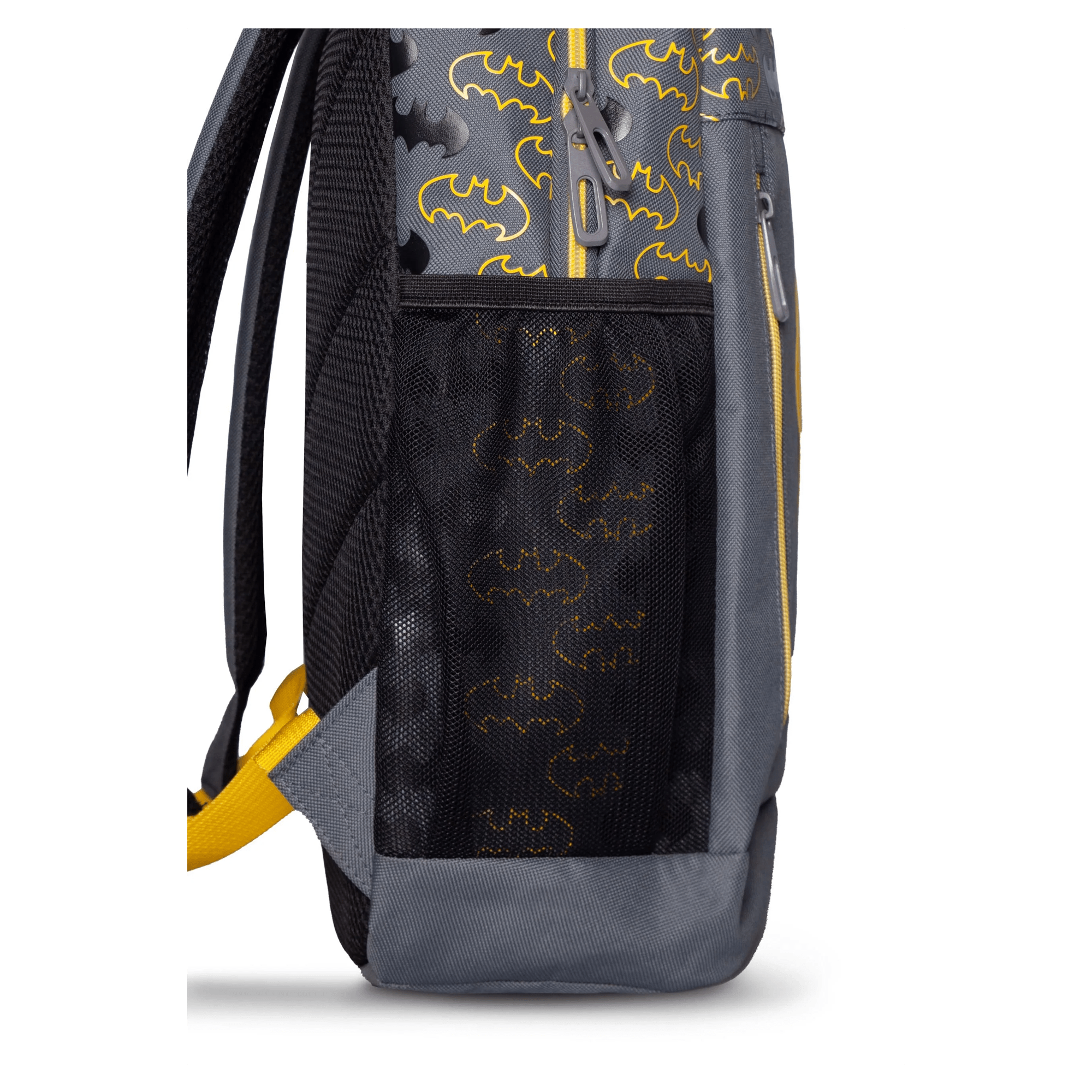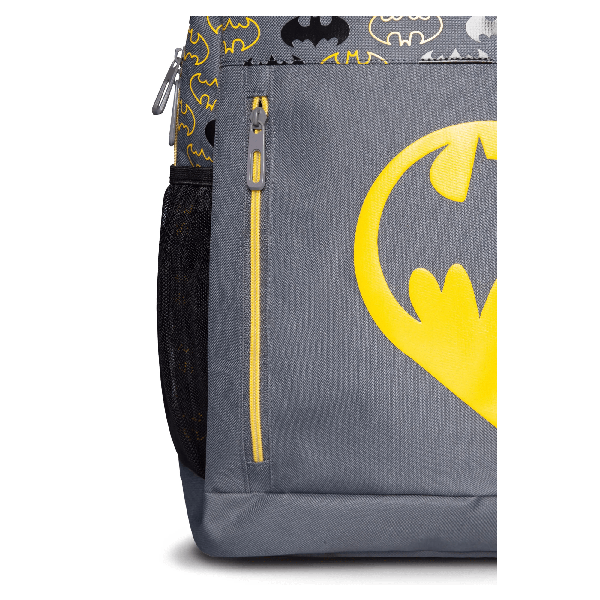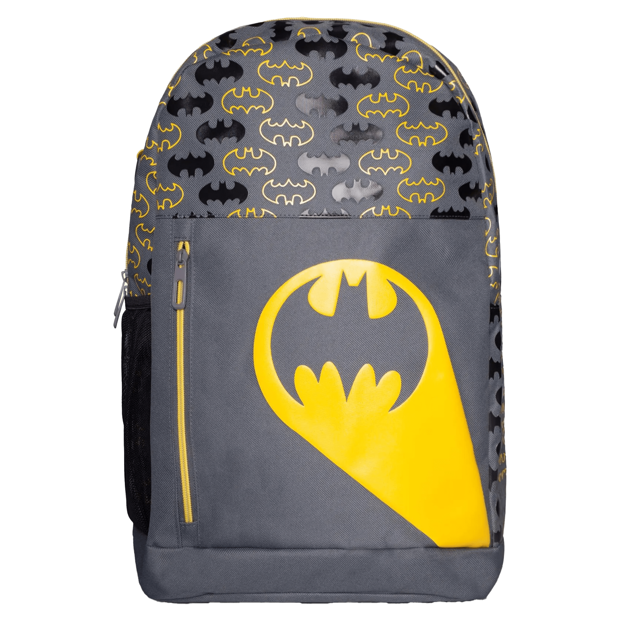 Elevate your bag game this school year with this unique Batman backpack. With a color palette that perfectly captures the look and feel of Batman, this backpack features several premium graphic details that will bring an element of fun to your day-to-day needs. The classic bat logo appears on a vibrant puff print that spans the main fabric of this Batman backpack. Additional graphic features include the yellow embossed bat logo on the front outer pocket and the matching-colored zippers and webbing. This backpack has side mesh pockets and a laptop compartment, ensuring all your belongings will be organized.