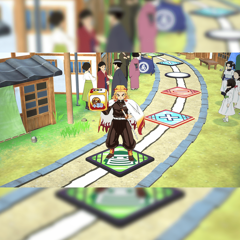 Iconic locations from the anime, like Mt. Fujikasane and Asakusa, appear as boards in this game. Advance on the game board by rolling the dice! The game board switches between day and night. During the day, prepare for the night with events and minigames. At night, you will search for demons to defeat. Aim to become the strongest Demon-Slayer swordsman!
