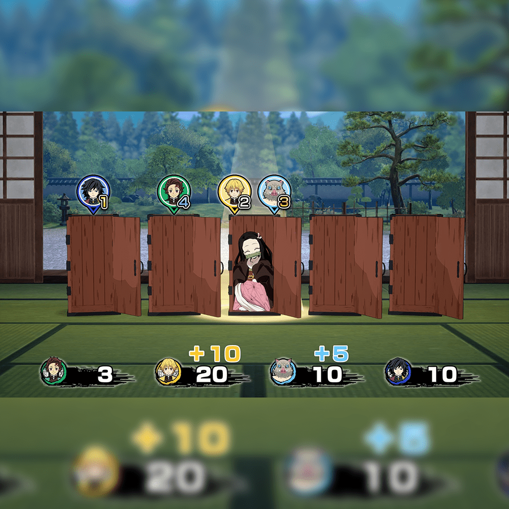 Choose your favorite characters from the Demon Slayer Corps., including Tanjiro, Zenitsu, Inosuke, and the Hashira! Nezuko appears on the game board to aid players as a support character!