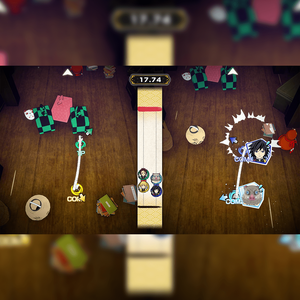 Compete against each other, or work together in teams of two in a variety of minigames! At certain moments, you will encounter powerful demons like Akaza, where all players must cooperate to defeat them!
