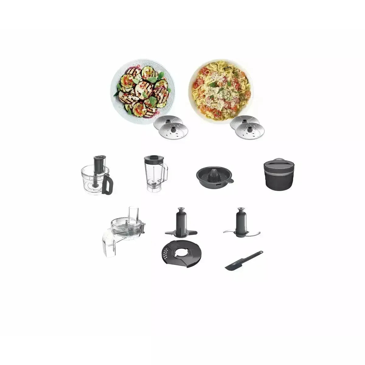 | Included Attachments | Reversible Thin/Fine Grate Disc, Reversible Thick/Coarse Grate Disc, Citrus Press, Dough Tool, Main Knife Blade |